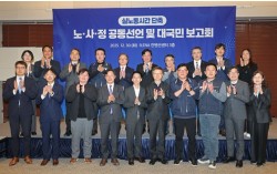 30일 서울 중구 ENA스위트호텔에서 열린 '실노동시간 단축, 노·사·정 공동선언 및 대국민 보고회'에서 김영훈 고용노동부 장관과 노사정 부대표, 실노동시간 단축 로드맵 추진단 관계자들이 기념촬영을 하고 있다. 연합뉴스 정부가 ‘응답하지 않을 권리’ 보장…