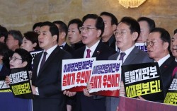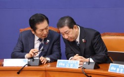 더불어민주당 정청래 대표와 김병기 원내대표(왼쪽부터)가 22일 오전 서울 여의도 국회에서 열린 최고위원회의에서 대화하고 있다. [연합뉴스] 팽팽하던 여야 간 특검 대치가 22일 새 국면에 접어들었다. 더불어민주당과 국민의힘이 이날 통일교의 정치권 금품 지…