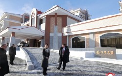 노동신문은 23일 "위대한 당중앙의 직접적인 발기와 정력적인 영도에 의하여 우리 나라 북부산간도시의 전형으로, 특색있는 사계절산악관광지로 자기의 매력적인 모습을 더욱 일신해가는 삼지연시에 현대적인 호텔들이 새로 일떠서 준공하였다"고 보도했다. 사진은 김정은 국무위원장이…