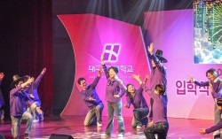 2월 24일 인당아트홀에서 열린 2026학년도 신입생 입학식에서 남성희 대구보건대학교 총장이 보직자들과 함께 넷플릭스 인기 애니메이션 ‘케이팝 데몬 헌터스’ 주제곡에 맞춰 춤을 추며 신입생들을 환영하고 있다. 글로컬대학 대구보건대학교(총장 남성희)가 20…