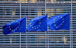 지난 18일(현지시간) 벨기에 브뤼셀에서 열린 유럽연합(EU) 정상회의 당일, 유럽연합 집행위원회 본부 밖에서 유럽연합 깃발이 휘날리고 있다. 로이터=연합뉴스 미국이 자국 빅테크 규제 입법을 주도한 유럽연합(EU) 전 고위 인사 등을 상대로 입국 금지 조치를 단행…