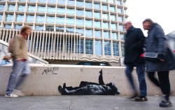 지난 22일(현지시간) 영국 런던 토트넘 코트 로드역 인근에서 발견된 ‘얼굴 없는 예술가’ 뱅크시의 작품. AP=연합뉴스 ‘얼굴 없는 예술가’로 불리는 뱅크시가 크리스마스를 앞두고 영국 런던에 새로운 작품 두 점을 남겼다. 연말 분위기와는 대비되는 메시지를 담은 …