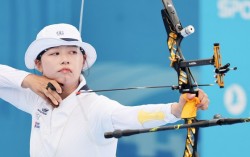 지난 12일 광주 동구 국립아시아문화전당 5·18민주광장에서 열린 2025 세계양궁선수권대회 리커브 여자 개인전 16강에서 임시현이 화살을 쏘고 있다. 연합뉴스 극우 성향 커뮤니티 '일간베스트'에서 사용되는 표현을 사용해 논란이 된 여자 양궁 국가대표 임…