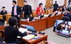 18일 국회 법제사법위원회 전체회의에서 곽규택·김재섭·나경원 의원 등 국민의힘 법사위원들이 방송미디어통신위원회 설치법·방송법·정보통신망법 개정안 의결을 앞두고 퇴장하고 있다. 연합뉴스 이른바 ‘허위·조작정보 근절법’(정보통신망법 개정안)이 18일 더불어민…