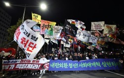지난 3일 서울 여의도 국회의사당 정문 앞에서 열린 ‘12·3 내란·외환 청산과 종식, 사회 대개혁 시민 대행진’ 집회에서 참가자들이 행진하고 있다. 연합뉴스 영국 시사주간지 이코노미스트가 한국을 올해 민주주의 위기를 극복한 대표적 국가로 평가하며 ‘올해의 국가’…