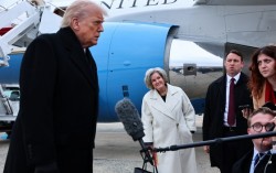 도널드 트럼프 미국 대통령(왼쪽)이 17일(현지시간) 미 메릴랜드주 앤드루스 합동기지에서 취재진과 대화하는 모습을 수지 와일스 백악관 비서실장(왼쪽 두 번째)이 지켜보고 있다. 로이터=연합뉴스 도널드 트럼프 미국 대통령은 언론 인터뷰에서 자신을 두고 “알…