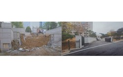 윤석열 정부 시절 추진된 서울 용산 대통령 집무실 동쪽 진입로 착공 당시 모습(왼쪽), 완공된 모습(오른쪽). 사진 추미애 더불어민주당 의원실 윤석열 전 대통령이 재임 시절 지각 출근을 숨기기 위해 비밀 통로를 만들었다는 의혹과 관련, 해당 통로의 착공과…