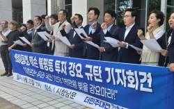 민주당과 민주당 원외 조직인 더민주혁신회의가 관세 협상과 관련, 미국 트럼프 대통령을 규탄하고 나섰다. 전국 동시 다발적인 기자회견을 통해서다. 더민주대전혁신회의가 23일 오전 11시 대전시의회 앞에서 기자회견을 열고 트럼프 대통령을 규탄하고 있다. 연합뉴스 친명계 …