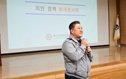 부산 수영경찰서 양현철 범죄예방대응과장이 지난 23일 치안 정책 토크콘서트에서 주민과 '일상 속 치안 문제'를 주제로 대화하고 있다. 사진 수영경찰서 부산수영경찰서(서장 송진섭)에서는 23일 수영구 노인일자리 사업에 참여 중인 주민들과 함께 일상 속 치안…