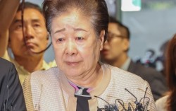 한학자 통일교 총재가 17일 서울 종로구 KT광화문빌딩에 마련된 김건희 여사의 의혹을 수사하는 민중기 특별검사팀 사무실에 세 번의 소환 불응 만에 자진 출석하고 있다. 연합뉴스 통일교가 23일 한학자 총재의 구속과 관련해 "법원의 판단을 겸허히 받아들인다…