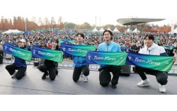 '올림픽데이런 2025 in 전주' 마라톤 대회가 열린 지난해 11월 16일 전북 전주시 전주월드컵경기장 일원에서 올림픽 스타들이 마라톤 대회 참가자들과 기념사진을 찍고 있다. 왼쪽부터 사격 김예지, 리듬체조 신수지, 쇼트트랙 곽윤기, 펜싱 오상욱, 축구 이동국. 뉴스…