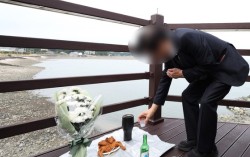 재석아! 엄마 왔어. 엄마 너 잊지 않을게. 고마워. 눈에 넣어도 아프지 않을 내 아들, 많이 사랑해. 22일 오후 2시쯤 인천 옹진군 영흥도 하늘고래전망대. 갯벌에 고립된 노인을 홀로 구조하다가 순직한 고(故) 이재석 경사의 모친이 가족의 부축을 받으며 오열…