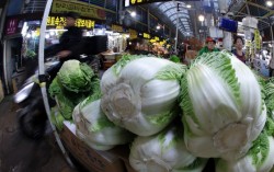 지난 6일 오후 서울 동대문구 경동시장의 한 채소 매대에 배추가 진열되어 있다. 뉴스1 배추 한 포기 평균 소매가격이 7000원을 넘었다. 19일 한국농수산식품유통공사에 따르면 전날 기준 배추 상품 평균 소매가격은 7062원으로 지난해 같은 기간보다 9.3%…