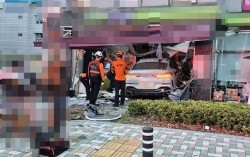 22일 부산 해운대구 재송동 한 교차로에서 주행 중이던 BMW 스포츠유틸리티차량(SUV)이 편의점으로 돌진, 운전자와 편의점 종업원 등 2명이 부상을 입었다. 사진 부산 해운대경찰서 졸음운전으로 추정되는 차량이 편의점으로 돌진, 2명이 다쳤다. 부산 해운대경…