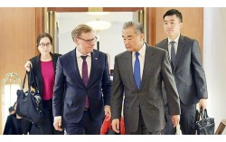 지난 8일 베이징에서 왕이(오른쪽 두번째) 중국 외교부장이 요한 바데풀(왼쪽 두번째) 독일 외교부장과 회담을 마치고 걸어나오고 있다. 중국외교부 홈페이지 캡처 중국이 이웃 나라들과 전쟁 직전에 ‘최후통첩’에 쓰던 외교 용어를 일본을 향해 꺼내들었다. 다카…