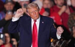 도널드 트럼프 대통령이 9일(현지시간) 펜실베이니아주 마운트 포코노에 있는 마운트 에어리 카지노 리조트에서 연설을 마친 후 음악에 맞춰 춤을 추고 있다. AP=연합뉴스 도널드 트럼프 미국 대통령이 9일(현지시간) 자신의 불법 이민 차단 정책으로 인해 국경이 강력해…