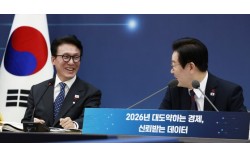 이재명 대통령이 11일 세종시 정부세종컨벤션센터에서 열린 '2026년 대도약하는 경제, 신뢰받는 데이터' 기획재정부(국세청·관세청·조달청)-국가데이터처 업무보고에서 김민석 국무총리와 대화하고 있다. 연합뉴스 김민석 국무총리에게 개혁 과제를 조언하는 플랫폼인 ‘사회…