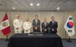 지난 19일(현지시간) 페루 리마의 국영 시마조선소에서 호세 헤리 페루 대통령(가운데)과 박용열 HD현대중공업 함정사업본부장(오른쪽 첫번째)이 ‘차세대 잠수함 공동개발 계약’을 체결하는 모습. 사진 HD현대중공업 HD현대중공업은 지난 19일(현지시간) 페…