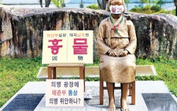 '철거'라고 적힌 마스크가 씌워진 제천의병광장 평화의 소녀상. 사진 김병헌 대표 페이스북 캡처 경찰이 평화의 소녀상 철거를 요구하며 일본군 위안부 피해자를 모욕한 혐의를 받는 강경 보수단체 측의 이른바 ‘3분 집회’ 계획을 받아들이지 않았다. 22일…