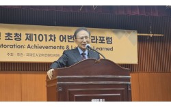 이명박 전 대통령이 10일 서울시립대 국제도시과학전문대학원이 주최한 제101차 어번인프라포럼에서 ‘서울시 버스개혁&청계천 복원: 성과와 교훈’이란 주제의 기조 강연을 하고 있다. 사진 이명박 재단 이명박(MB) 전 대통령이 10일 “청계천 복원 사업을 할 때 공무…