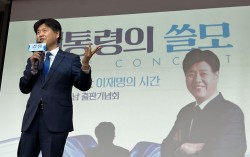 김용 전 민주연구원 부원장이 28일 오후 부산상공회의소 대강당에서 '대통령의 쓸모' 부산·울산·경남 출판기념회를 열고 인사말을 하고 있다. 연합뉴스 이재명 대통령의 최측근인 김용 전 민주연구원 부원장이 28일 부산에서 출판기념회를 열고 "부산에서 제2의 이재명, …