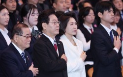이재명 대통령과 김혜경 여사, 이종찬 광복회장 등이 1일 서울 강남구 코엑스에서 열린 제107주년 3·1절 기념식에서 국기에 경례하고 있다. 연합뉴스 이재명 대통령은 3·1절을 맞아 "국가를 위해 헌신하신 분들이 존경받으며 공동체를 배반한 행위는 준엄하게…