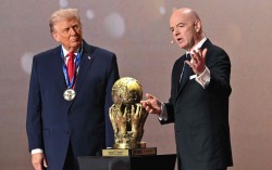 인파티노(오른쪽) FIFA회장이 트럼프 대통령에게 FIFA 평화상을 수여하고 있다. AFP=연합뉴스 도널드 트럼프 미국 대통령이 예상대로 초대 ‘국제축구연맹(FIFA) 평화상’을 수상했다. 트럼프 대통령은 6일(한국시간) 미국 워싱턴DC의 케네디센터에서 열린…