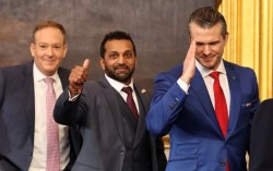 지난 1월 20일(현지시간) 미국 워싱턴 DC 국회의사당에서 열린 도널드 트럼프 대통령 취임식에서 캐시 파텔 당시 연방수사국(FBI) 국장 지명자(가운데)와 피트 헤그세스 당시 국방장관 지명자(오른쪽 첫 번째)가 인사하고 있다. 로이터=연합뉴스 도널드 트럼프 2기…