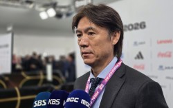 홍명보 축구 국가대표팀 감독이 6일 미국 워싱턴DC 케네디센터에서 열린 조추첨 후 믹스트존에서 한국 기자들과 만나 질문에 답하고 있다. 연합뉴스 홍명보 한국축구대표팀 감독은 6일(한국시간) 2026년 북중미 월드컵 조추첨에서 일단 유럽과 남미의 최강팀들을 피한 것…