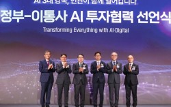 정부와 이동통신 3사가 손 잡고 국내 인공지능(AI) 경쟁력 강화를 위해 협력해 나가기로 했다. 통신 3사는 올해 AI 분야에만 2800억원 이상 투자할 방침이다. 12일 서울 중구 웨스틴 조선 서울에서 열린 '정부-이통사 AI 투자협력 선언식'에서 참석자들이 기념촬영…