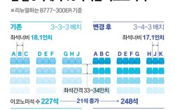 대한항공이 오는 9월 일부 기종에 ‘프리미엄석’을 도입하면서 기존 이코노미석 배열을 3-3-3 시스템에서 3-4-3 시스템으로 변경한다고 밝혀 논란이다. 1열당 좌석이 기존 9석에서 10석으로 늘어 좌석당 너비가 18.1인치(약 45.9㎝)에서 17.1인치(약 43.4…