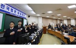 8일 오전 경기 고양시 사법연수원에서 열린 2025년 하반기 전국법관대표회의 정기회의에서 참석자들이 국기에 경례하고 있다. 전국 각급 법원의 대표 판사들은 이 자리에서 대법관 증원 등 상고심 관련 사법제도 개선과 내란전담 재판부 설치, 법리를 왜곡한 판·검사를 처벌하는…