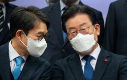 이재명 당시 더불어민주당 대표가 지난 2023년 1월 16일 서울 여의도 국회도서관에서 열린 더불어민주당 2023년 참좋은지방정부위원회 출범식에서 정원오 당시 공동위원장과 대화하고 있다. 뉴스1 이재명 대통령이 8일 엑스(X)에 더불어민주당 소속 정원오 성동구청장…