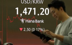 15일 오후 서울 중구 하나은행 딜링룸 전광판에 원-달러 환율이 표시되어 있다. 뉴시스 달러-원 환율이 야간 거래에서 낙폭을 확대하며 1470원 선을 밑돈 채 마감했다. 16일 한국시간 새벽 2시 달러-원 환율은 전장 서울 외환시장 종가 대비 5.1…