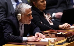 28일(현지시간) 미국 뉴욕 유엔본부에서 열린 유엔 안전보장이사회 긴급회의에서 아미르 사에이드 이라바니 주유엔 이란 대사가 발언하고 있다. AFP=연합뉴스 이란은 28일(현지시간) 미국과 이스라엘의 공격이 단순한 침략 행위가 아닌 전쟁 범죄라고 주장했다.…