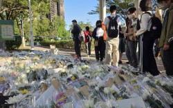 30일 홍콩 타이포 대화재 희생자를 추모하는 시민들의 꽃다발과 글들이 쌓여있다. 홍콩=이도성 특파원 중국 정부가 29일 홍콩 아파트 화재 참사에 정부의 책임 규명을 요구한 남성을 반역 혐의로 체포했다고 홍콩 사우스차이나모닝포스트(SCMP)가 보도했다. 홍…