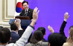 이재명 대통령이 3일 청와대 영빈관에서 열린 '새롭게 선 민주주의, 그 1년' 외신 초청 기자회견에서 취재진 질문 신청을 받고 있다. 연합뉴스 이재명 대통령은 3일 청와대 영빈관에서 열린 외신 대상 기자회견에서 한·미 연합훈련 축소·조정 가능성과 관련해 …