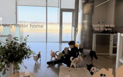 경기 화성시 수퍼빈 아이엠 팩토리 안에 마련된 유기견 임시 보호 공간. 천권필 기자 경기도 화성시 우정읍에는 독특한 외관의 공장이 있다. 플라스틱 폐페트병을 재활용하는 ‘아이엠 팩토리’다. 지난 13일 U자형 건물 사이에 조성된 정원을 들어가다 보니 커다…