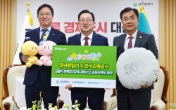 이장우 대전시장(가운데)과 대전관광공사 김용원 사장(오른쪽), 한국조폐공사 성창훈 사장이 19일 대전시청에서 ‘꿈씨패밀리 화폐 굿즈’ 출시를 위한 공동브랜딩 업무협약을 체결했다. 이들 기관은 화폐 부산물로 굿즈를 만든다.