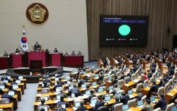 여야가 약 728조원 규모의 내년도 정부 예산안을 법정 시한 마지막 날인 2일 합의 처리했다. 국회는 이날 밤 11시40분 내년도 정부 예산안을 재석 262명, 찬성 248명, 반대 8명, 기권 6명으로 의결했다. 총예산 규모는 정부 원안 대비 4조3000억원가량 깎는…