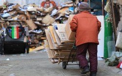 서울 종로구 탑골공원 인근에서 한 어르신이 폐지를 모은 손수레를 끌고 있다. 위 사진은 기사 내용과 무관. 연합뉴스 지난해 정부의 '노인 일자리' 사업 참여자들이 받은 월평균 활동비는 40만5000원으로 나타났다. 19일 한국노인인력개발원(개발원)이…