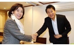 2023년 1월 16일 서울 중구의 한 음식점에서 만나 악수하고 있는 오세훈 서울시장과 나경원 의원. 뉴스1 내년 6·3 지방선거의 최대 격전지인 서울시장 선거를 둘러싼 야권 내 신경전이 치열하다. 내부 수 싸움에 돌입한 국민의힘과 독자 출마 카드를 빼든…