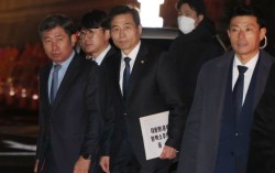 윤석열 대통령의 ‘국회 탄핵소추의결서’를 전달하기 위해 김민기 국회 사무총장(왼쪽에서 두 번째)이 지난해 12월14일 서울 용산 대통령실 청사로 향하는 모습. 대통령실사진기자단 총장님, 지금 대통령이 국회로 출발했답니다. 지난해 12월 6일 오후. 김민기 …