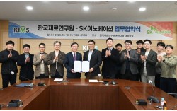 한국재료연구원과 SK이노베이션 환경과학기술원 간 업무협약 체결식 참석자들이 단체사진을 촬영하는 모습 한국재료연구원(KIMS, 원장 최철진)은 12월 10일(수) 창원 본원에서 SK이노베이션 환경과학기술원(원장 김필석)과 AI 및 전기화(Electrific…