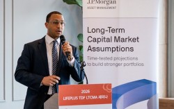 조던 스튜어트 JP모건 멀티에셋솔루션부문 전무가 11일 서울 여의도에서 열린 한화자산운용·JP모간 경제전망 세미나에서 내년 경기 시장 전망을 발표하고 있다. 사진 한화운용 내년엔 인공지능(AI) 수요 확대로 ‘코리아 프리미엄’이 더 강해질 것으로 전망한다. 미국 달러…