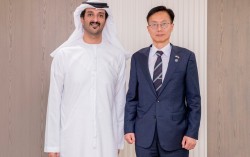 김용선 지식재산처장(오른쪽)과 압둘라 빈 투크 알 마리 (H.E. Mr. Abdulla bin Touq Al Marri) 아랍에미리트연합국(UAE) 경제관광부 장관(왼쪽)이 양자 회담을 갖고 기념촬영을 하고 있다. 지식재산처(처장 김용선)는 11월 18일…