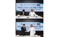 임태빈 아리야코리아 대표(왼쪽)와 압둘라 알 아자니 드리븐 회장(오른쪽)이 케이타워 건립을 위한 MOU를 체결했다. 중동 진출 컨설팅 전문 기업 아리야코리아㈜(대표 임태빈)가 두바이의 유력 부동산 개발 및 컨설팅 기업인 '드리븐(Driven)'社(회장 압…