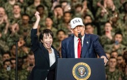 지난달 28일 일본 요코스카 미 해군기지에 정박한 조지 워싱턴함에서 도널드 트럼프 미국 대통령의 소개로 다카이치 사나에 일본 총리가 손을 번쩍 들어보이고 있다. AFP=연합뉴스 도널드 트럼프 미국 대통령이 대만 유사시 개입 시사 발언으로 중국과 갈등을 빚고 있는…