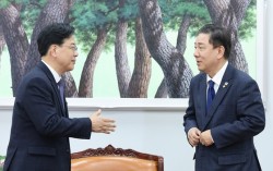 김병기 더불어민주당 원내대표와 송언석 국민의힘 원내대표가 25일 서울 여의도 국회에서 회동하고 있다. 뉴스1 국민의힘이 검찰의 대장동 항소 포기에 관한 국정조사를 국회 법제사법위원화 차원에서 하자고 제안하자 더불어민주당이 난색을 표하고 있다. 당초 법사위 국정조사…