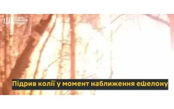 15일(현지시간) 우크라이나가 북한이 러시아에 무기 공급을 하는 데 사용하는 시베리아 횡단철도를 폭파시켰다고 밝혔다. 열차가 선로에 접근하는 순간 선로를 폭파하는 장면. 사진 우크라이나 국방부 정보국(HUR) 텔레그램 영상 캡처 우크라이나가 북한이 러시아…